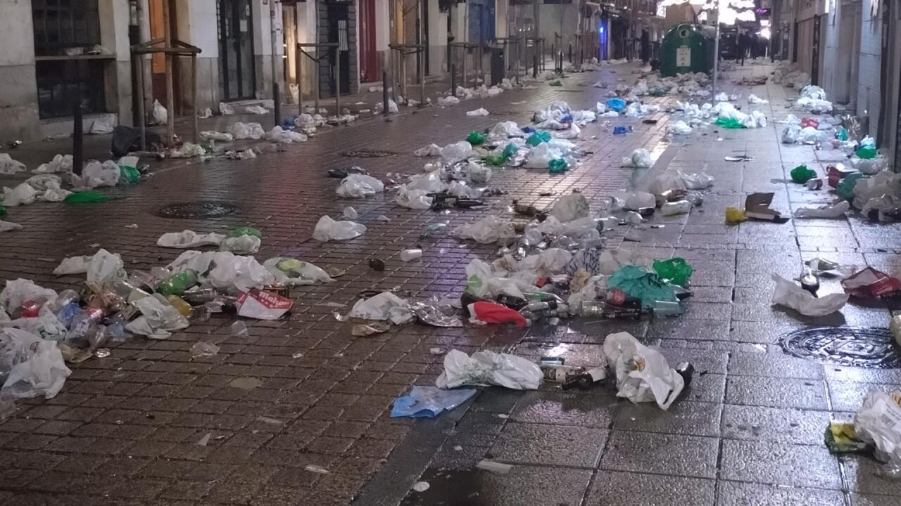 "Pese a que hubo miles de personas, la presencia conjunta de Policía Local y Policía Nacional ayudó a que no hubiese incidentes destacables más allá de los habituales en este tipo de concentraciones", señalan a Europa Press fuentes municipales tras las quejas de representantes vecinales, que han contrastado el refuerzo del servicio -con más medios materiales y humanos- con los restos de basura (bolsas, botellas, envases, vasos, etc) en plazas y calles.