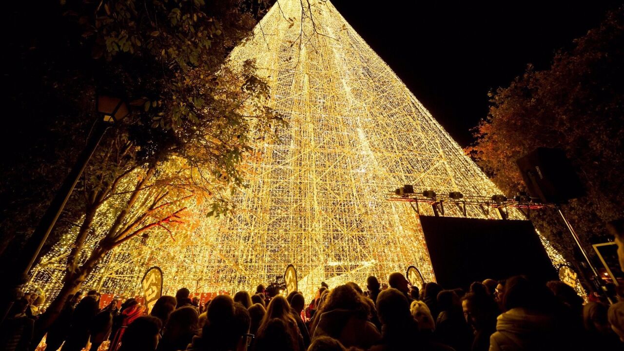 Cartes da la bienvenida a la Navidad con el árbol más alto de Europa