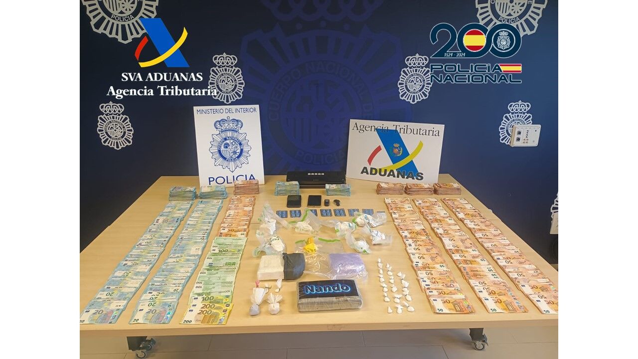Durante el registro los agentes incautaron: 3, 205 kilogramos de cocaína; 36 gramos de MDMA; 8 blíster de sildenafil; 96.400 euros, fraccionados en billetes de distinto valor facial; útiles para manipular las sustancias estupefacientes; así como tres vehículos y otros efectos.