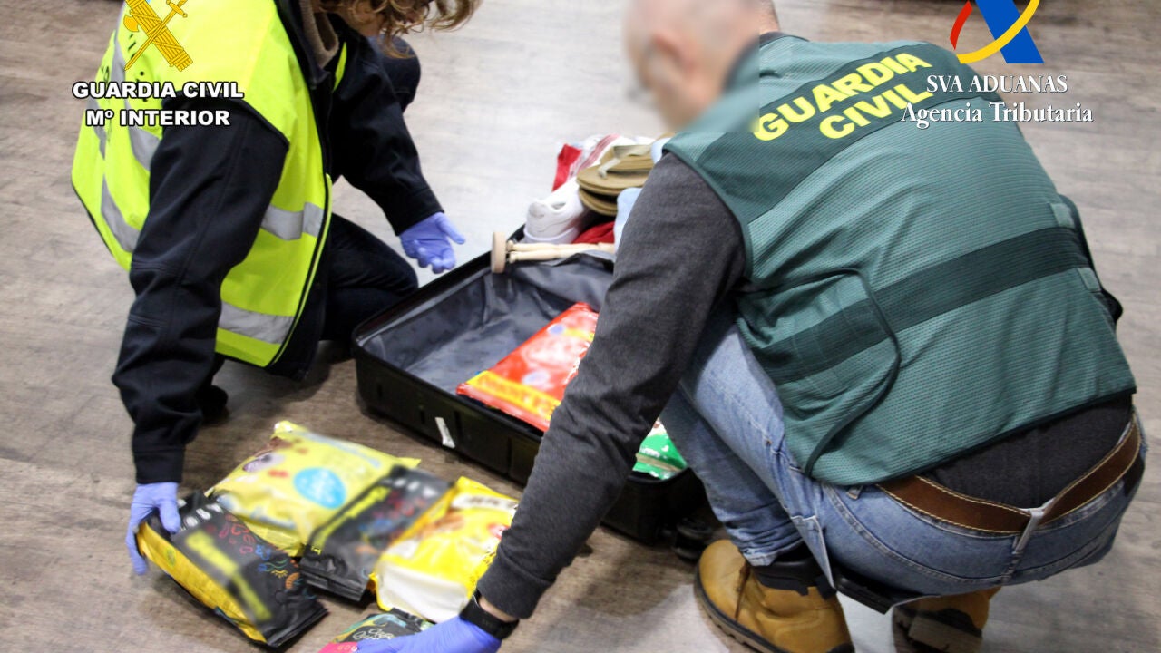 La droga venía en el interior de una maleta, oculta en paquetes de productos de alimentación