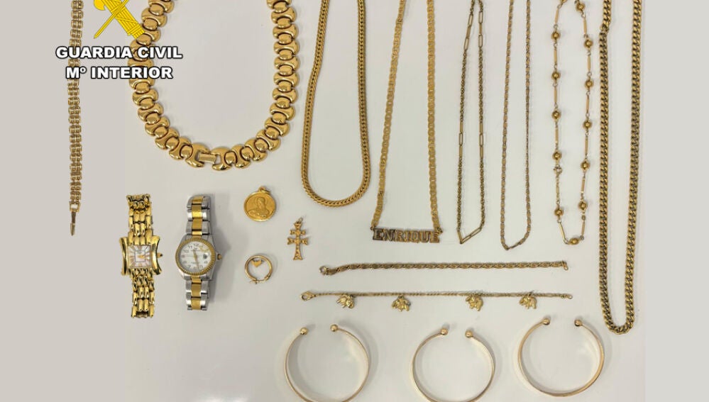 Además, en el vehículo que utilizaban, oculto en diferentes partes, se han encontrado collares, gargantillas, pulseras, medallas, dos relojes y un pendiente, efectos de los que no han podido acreditar su licita procedencia, siendo intervenido todo ello. Se investiga la procedencia de estas joyas, por si pudieran ser fruto de otras estafas o robos, como pueden ser del denominado abrazo cariñoso.