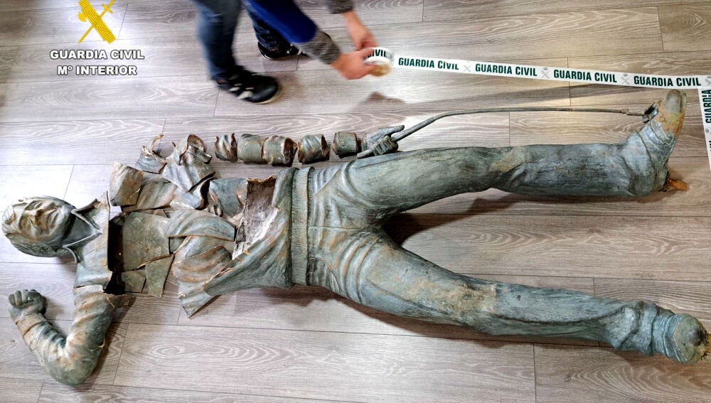 Con la información conseguida, se centraron las indagaciones sobre un varón vecino de Santander, teniendo que precipitarse las actuaciones para evitar la desaparición de la estatua, procediendo a la detención de esta persona y recuperando la obra sustraída en un trastero, partida por la cintura, estando la cabeza intacta, y el torso y brazos fracturados en varios trozos.