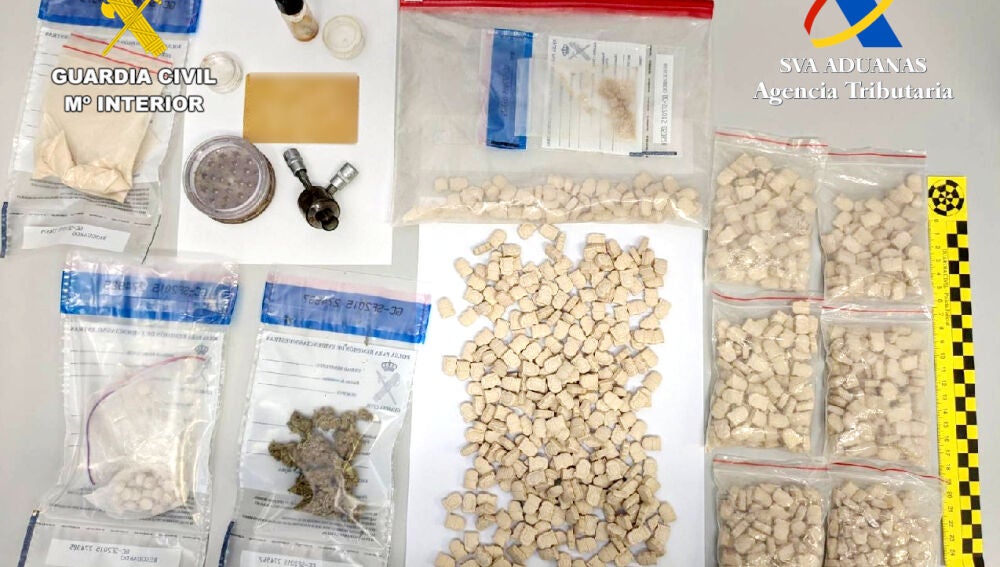 En una inspección más exhaustiva a los tres vehículos, encontraron en el buggi dos cajas de cartón, donde hallaron gran cantidad de pastillas que resultaron ser de MDMA (sustancia psicotrópica derivada de las anfetaminas con efectos tanto alucinógenos como estimulantes, más conocido como éxtasis), alcanzando las 920 unidades, y otras cantidades de hachís, metanfetamina y marihuana.