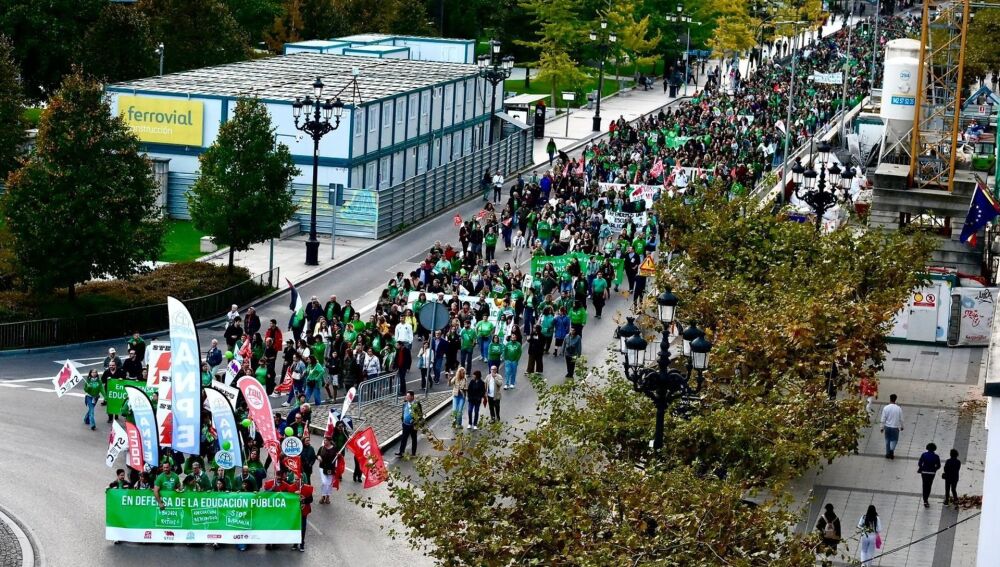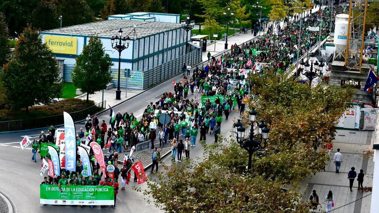 Bajo una gran pancarta en la que se ha podido leer 'En defensa de la educación pública', la marcha ha comenzado pasadas las 18.00 horas de la Plaza de Numancia y ha transcurrido por la calle Burgos y el Paseo Pereda, donde los participantes han realizado una sentada. También se han oído petardos.