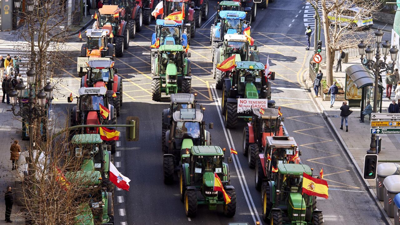 Esta protesta se enmarca en el 'Súper Jueves del campo español', convocado por ASAJA, COAG y UPA en más de una treintena de ciudades de diversas comunidades autónomas.