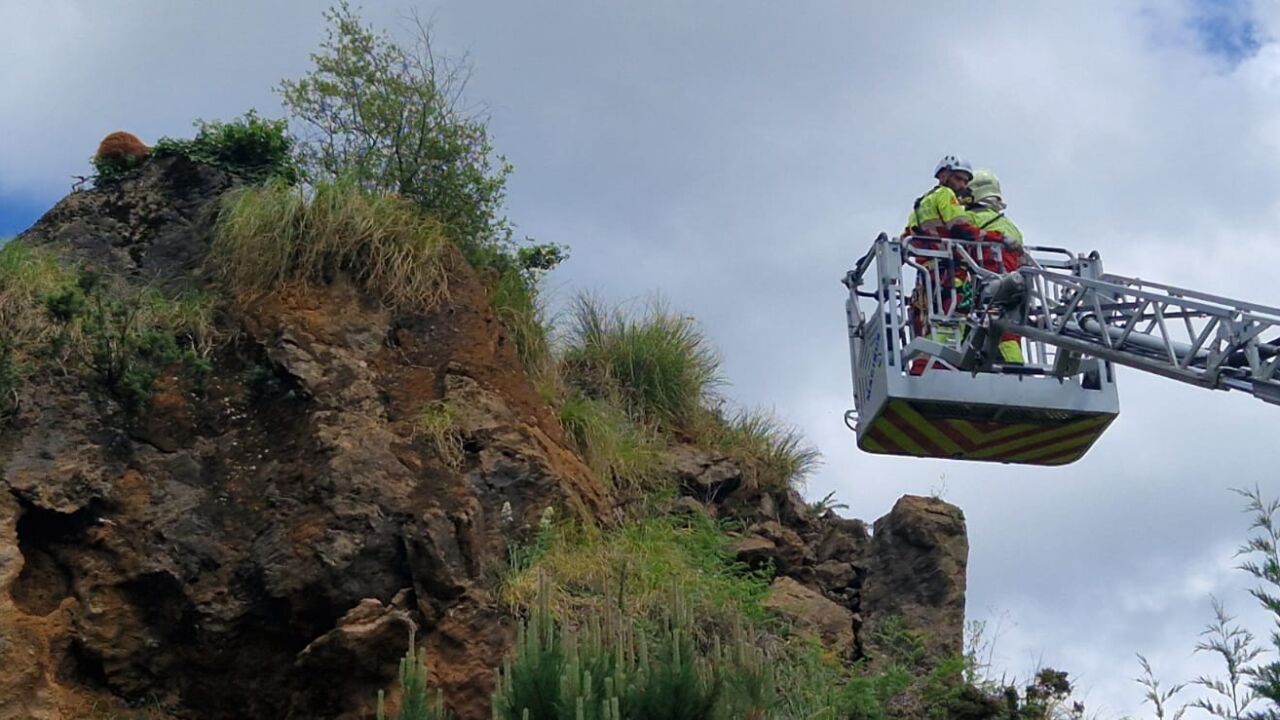 Personal de CANTUR ha sedado al animal y bomberos del 112 le han bajado del peñasco en el que se encontraba