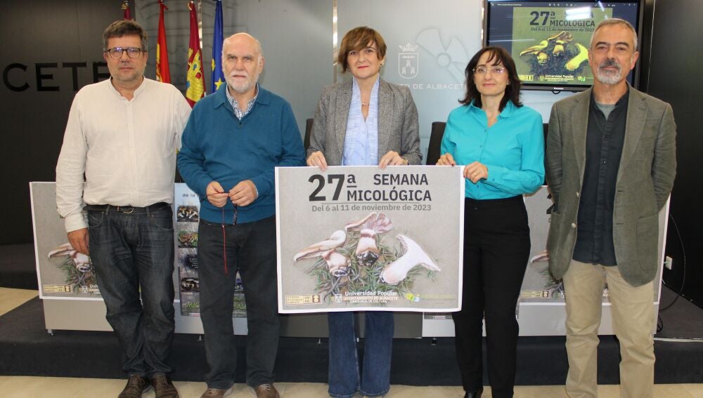 La concejala de Cultura, Elena Serrallé, ha participado en la presentación de las actividades que tendrán lugar del 6 al 11 de noviembre en Albacete con motivo de la 27º Semana Micológica, acompañada por la directora de la Universidad Popular, Mª José Jiménez, el profesor del Aula de la Naturaleza, José Fajardo, el director del Jardín Botánico de Castilla-La Mancha, Pablo Ferrandis, y Domingo Blanco, en representación de la Sociedad Micológica de Albacete.