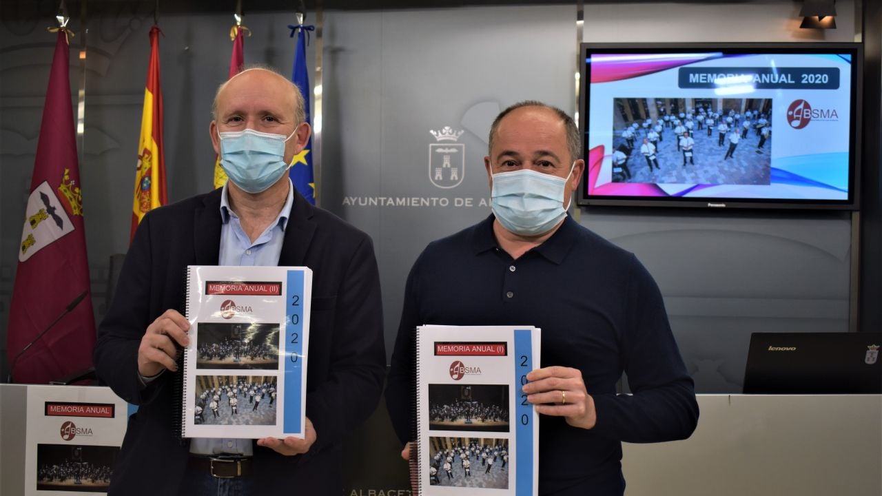 La Banda Sinfónica Municipal de Albacete (BSMA) actuó el pasado año en 77 ocasiones, 69 de forma presencial y ocho virtualmente. Así se recoge en la Memoria de 2020 de la BSMA, presentada por el vicealcalde y concejal responsable de la Banda, Emilio Sáez, y su director, Miguel Vidagany.