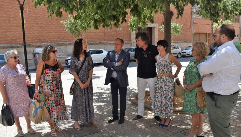 Sáez Cruz, acompañado del concejal de Sostenibilidad, Julián Ramón; de la concejala de Barrios y Pedanías, Ana Albaladejo, y el responsable del Servicio de Salud Ambiental, Juan Carlos Sánchez Tébar, explicó a Águeda Blanco, Conchi Navarro, Alicia Matamoros y Llanos Sánchez, de la asociación vecinal, los detalles de la reforma que se va a llevar a cabo en la plaza de Jesús de Medinaceli, “una reforma que pretende mantener el aspecto diáfano que presenta ahora, pero mejorando el equipamiento existente con actuaciones, como la ampliación del área de juegos infantiles o la instalación de una pérgola ornamental, además de una revisión del arbolado y de las jardineras”.