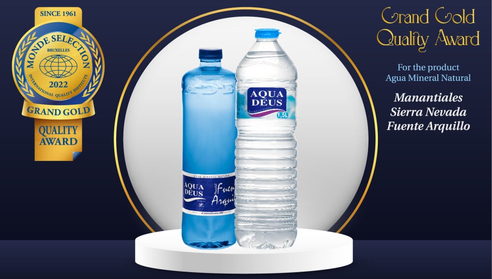Las aguas de Aquadeus de los manantiales Fuente Arquillo y Sierra Nevada han conseguido el máximo galardón de calidad “Grand Gold Quality Award” en los prestigiosos premios organizados por el Instituto Internacional de la Calidad Monde Selection, lo que las sitúa entre las mejores del mundo.