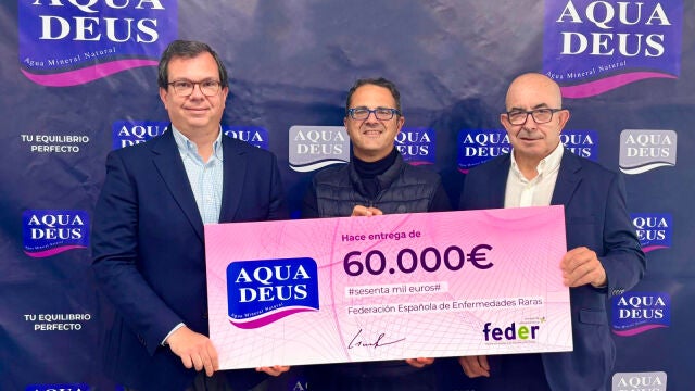Aquadeus, empresa de agua mineral natural integrada en Grupo Fuertes, ha donado 60.000 euros a la Federación Española de Enfermedades Raras (FEDER) para ayudar al fomento de la investigación en la búsqueda de diagnóstico y posibles tratamientos. En España se estima que existen más de tres millones de personas afectadas por algún tipo de dolencia poco frecuente.