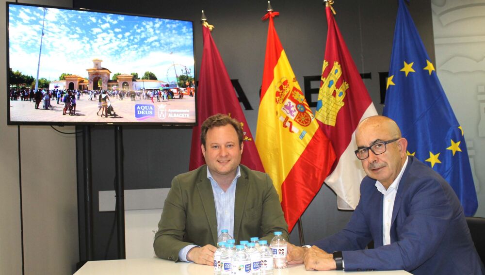 Aquadeus ha presentado al primer teniente de alcalde de Albacete, Vicente Casañ, el agua mineral natural ‘oficial’ de la feria, con la que lleva colaborando siete años consecutivos, y que promociona en las etiquetas de cinco millones de botellas de 0,33 litros, comercializadas por todo el territorio español.