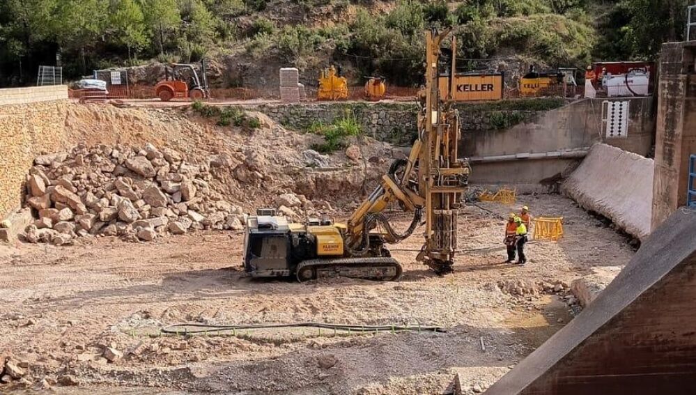 Los trabajos han empezado con actuaciones de micropilotaje y consolidación del terreno en el entorno del aliviadero de labio fijo del azud para garantizar su estabilidad e impermeabilización, y mejorar su capacidad portante, paso previo a la reconstrucción del cuenco del azud, una intervención clave para garantizar la estabilidad y durabilidad de la infraestructura.