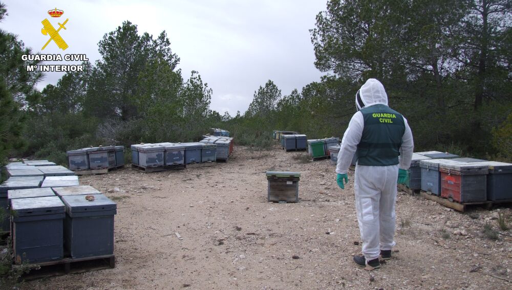 Efectivos de la Guardia Civil de Aýna, dentro de su compromiso para la protección del medio ambiente y la apicultura, han detenido a un vecino de la localidad albacetense de Paterna del Madera, de 56 años de edad, como presunto autor del hurto de quince colmenas apícolas, sitas en un paraje del término municipal ayniego.