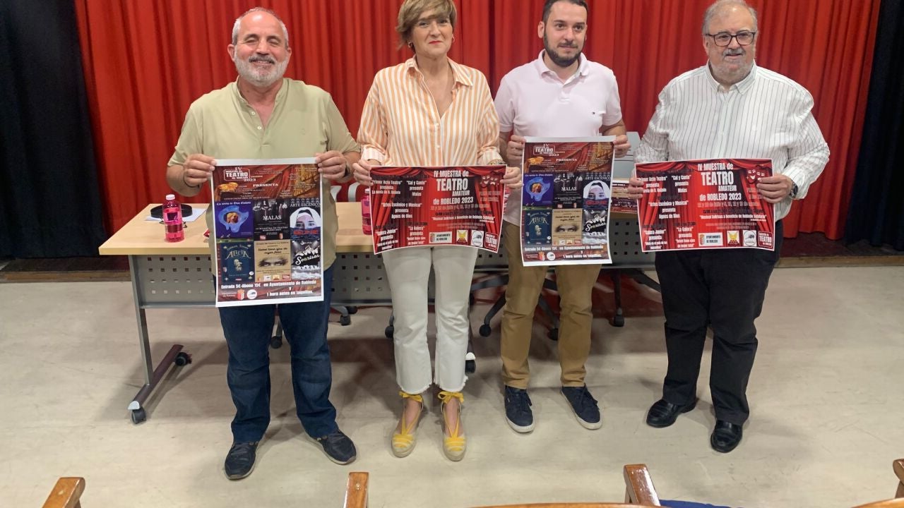 La concejala de Cultura, Elena Serrallé; Cristian Cuerda, alcalde de Robledo; Ginés Ruiz, coordinador de la Muestra de Teatro Robledo’23 y el director de Cultural Albacete, Ricardo Beléndez han sido los encargados de presentar la 4ª edición, en el Teatro Circo de Albacete.