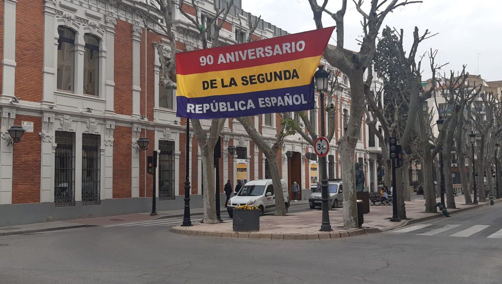 La bandera de la República luce ya en el Paseo de La Libertad para conmemorar el 90 aniversario de la Segunda República que se va a celebrar en la céntrica Plaza del Altozano con un acto a las 19: 45 h .