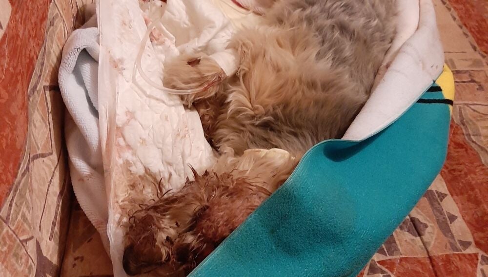 Fue trasladado a una clínica veterinaria donde comprobaron que presentaba heridas compatibles con golpes, fracturas y el cráneo abierto al haber recibido un disparo.