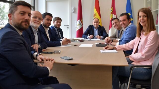 El alcalde de Albacete, Emilio Sáez, ha anunciado la “inminente constitución” de la sociedad público-privada que promoverá e impulsará la Plataforma Logística Intermodal y Puerto Seco ‘Eco-Port Albacete’, declaraciones que ha realizado tras la reunión celebrada en el Ayuntamiento con el consejero de Fomento, Nacho Hernando; el presidente de la Diputación Provincial, Santiago Cabañero; el director general de Movilidad y Transportes, Rubén Sobrino; el delegado de la Junta de Comunidades, Pedro Antonio Ruiz Santos; el delegado provincial de Fomento, Julen Sánchez, y el director general del Grupo Candelo, Antonio Martínez.