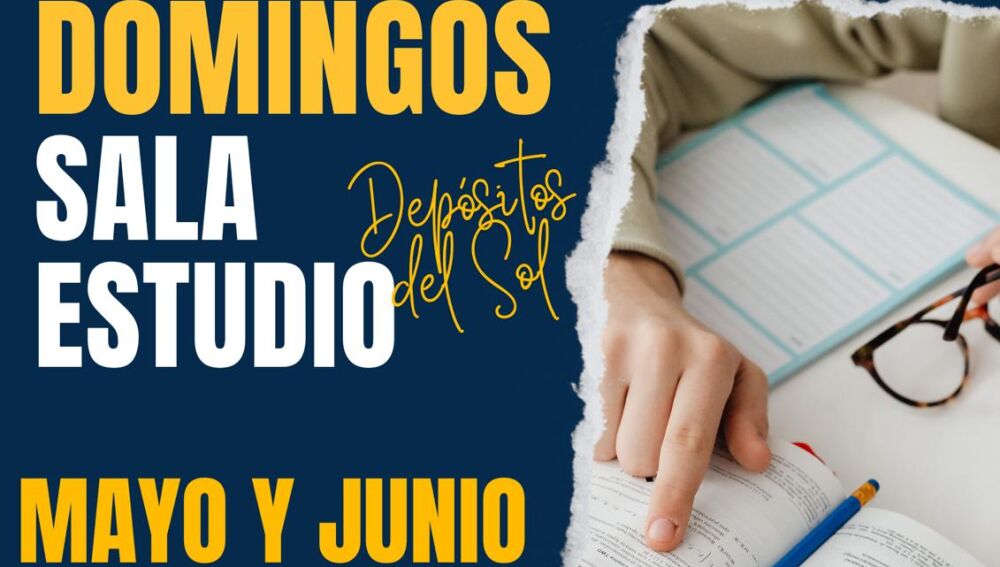 La sala de estudio de los Depósitos del Sol va a abrir sus puertas los próximos domingos días 18 y 25 de mayo, así como los días 1, 8, 15 y 22 de junio, en horario de 10:00 a 18:30 horas.