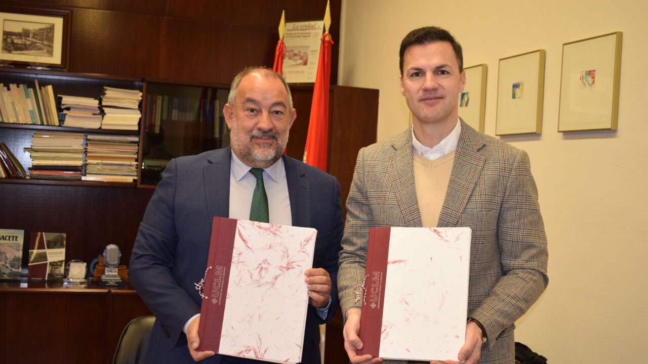 El rector de la Universidad de Castilla-La Mancha, Julián Garde, y el vicepresidente de la Fundación Albacete Balompié, Víctor Jesús Varela, han firmado un convenio de colaboración para la realización de títulos propios de microcredenciales universitarias con el objeto de fomentar el emprendimiento en el ámbito rural en Castilla-La Mancha.