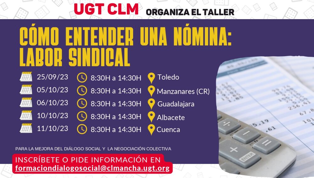 UGT enseña a interpretar una nómina con un taller que impartirá el próximo 10 de octubre