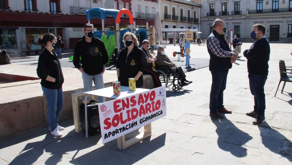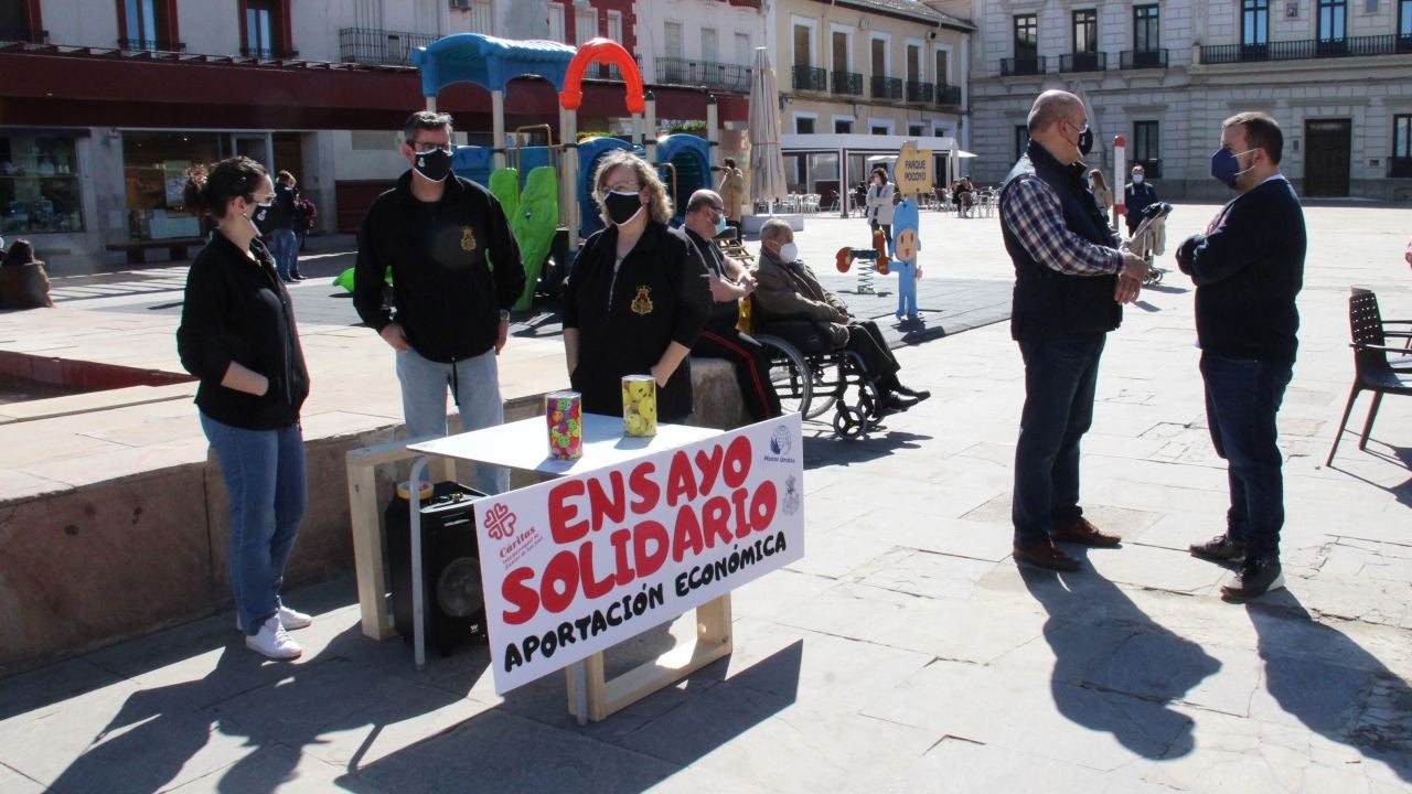 La Cofradía del Santo Entierro sustituía el conocido Ensayo Solidario por la instalación el sábado, de tres mesas petitorias en la Plaza de España, Emilio Castelar y Casa de Hermandad, para seguir colaborando con Cáritas y Manos Unidas.