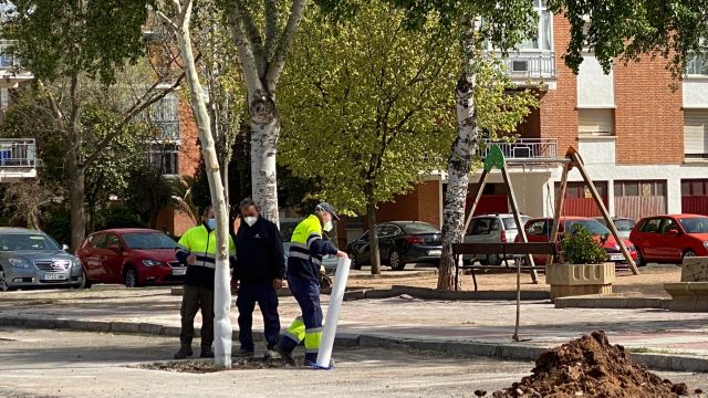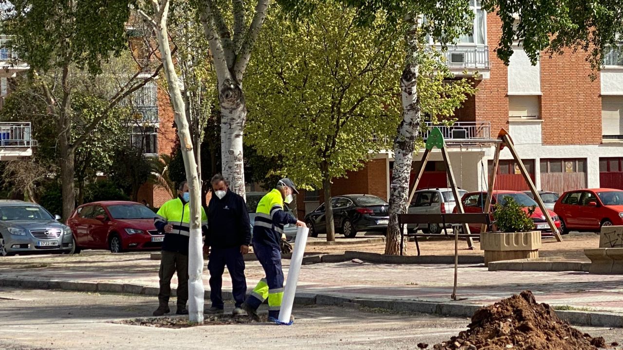 El concejal de Medio Ambiente y Parques y Jardines, Pablo Pichaco, ha visitado el Bosque de la Vida para comprobar el desarrollo de los trabajos en los que ha participado personal del servicio municipal de Parques y Jardines con maquinaria de Comsermancha. Un proceso complejo, señalaba Pichaco, tras el cual se aplicará “un tratamiento especial de hormonas vegetales para favorecer el enraizamiento de los árboles” y aumentar así las posibilidades de arraigo en su nueva ubicación.