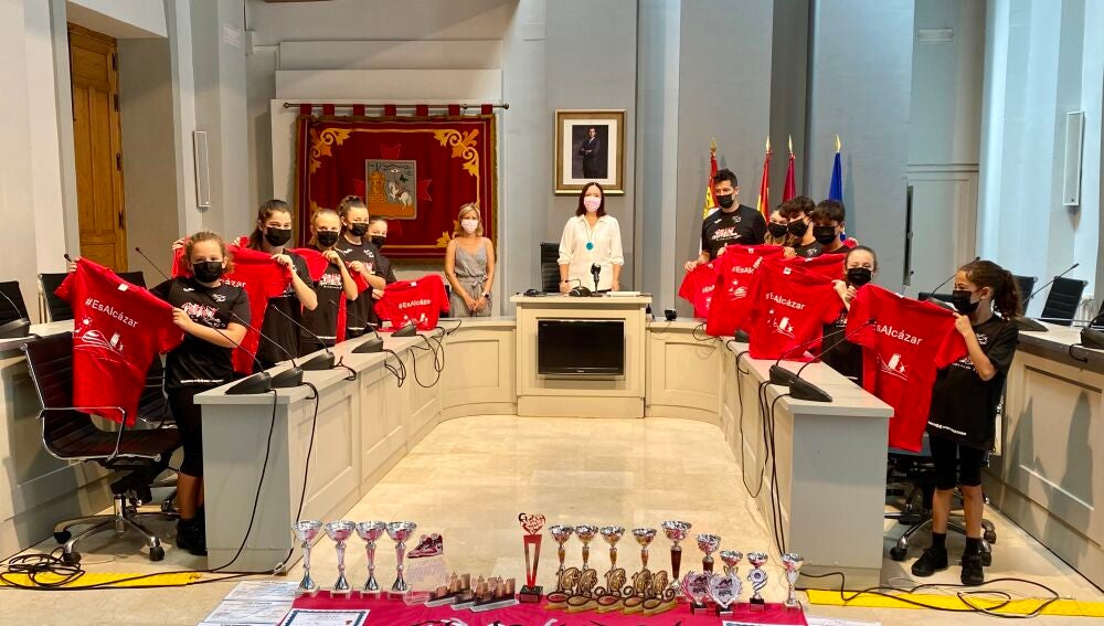Finalmente, la alcaldesa entregó al grupo de alumnos y alumnas de Spirit Dance Studio y a su coreógrafo, una camiseta #EsAlcázar como ocurre con estudiantes o deportistas que representan a Alcázar en competiciones fuera de la ciudad.