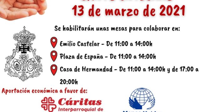 Todo lo recaudado irá destinado a Cáritas Interparroquial de la localidad y a Manos Unidas.