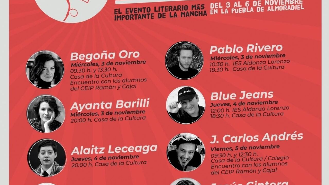 La 6ª Edición del Festival Nacional Literario Almoradiel Lee, se celebra del 3 al 6 de noviembre de 2021 en la Puebla de Almoradiel, contando con prestigiosos autores y autoras en su programación.