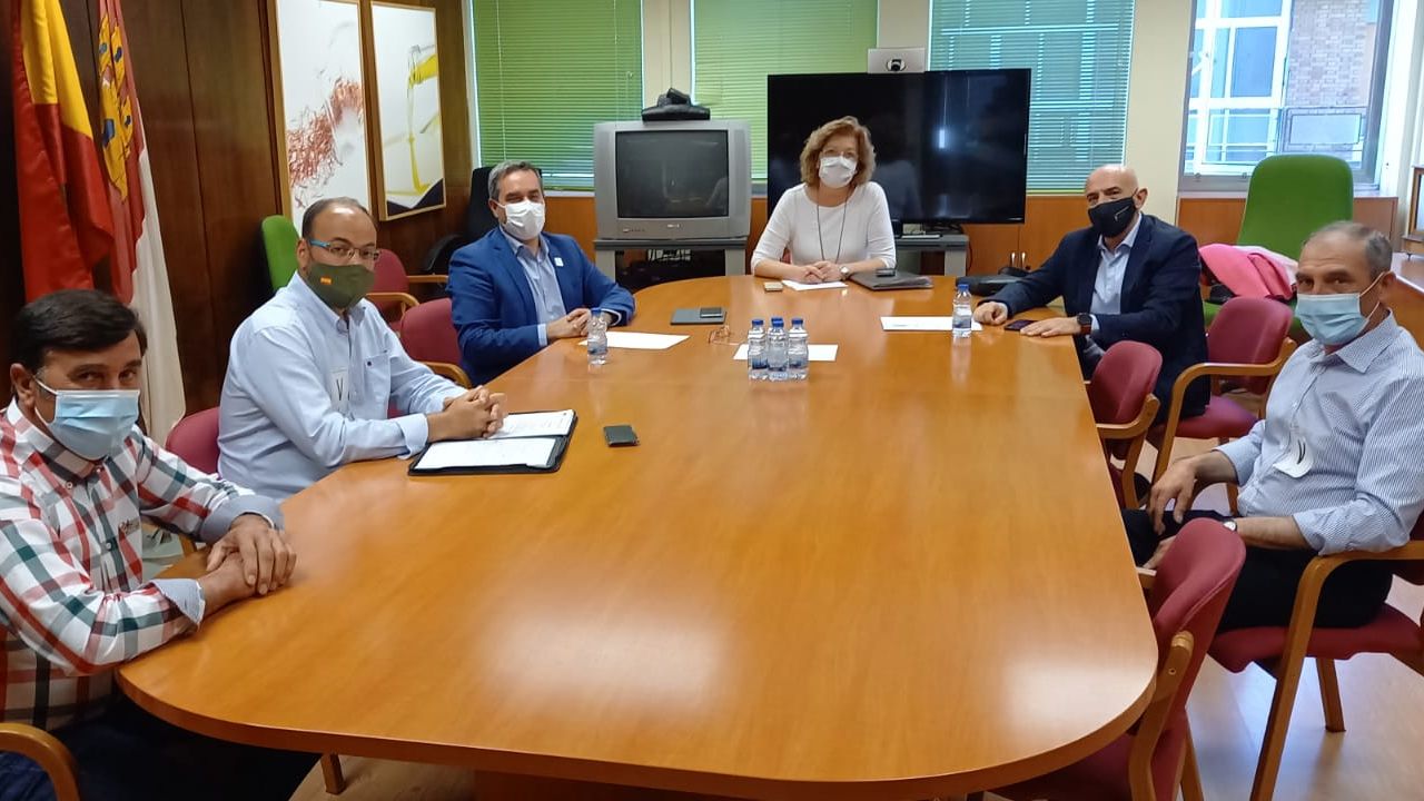 El presidente de la Confederación Hidrográfica del Guadiana (CHG), Samuel Moraleda; el director general de Desarrollo Rural de la Consejería de Agricultura, Agua y Desarrollo Rural de Castilla-La Mancha, José Juan Fernández, junto a la delegada de Agricultura de la Junta de Comunidades en Ciudad Real, Amparo Bremard, y los representantes de la Asociación de Afectados por la No Legalización de Pozos de Explotaciones Prioritarias y Agricultores a Título Principal (ATP) Miguel Fernández, Francisco Zarco y Abel Alcolea se han reunido en la delegación de Agricultura en Ciudad Real para abordar la problemática de los pozos de regadío de las explotaciones prioritarias.