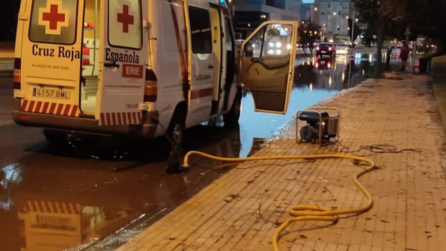 También se registraron numerosas incidencias por la gran cantidad de lluvia acumulada en la calzada al no tragar la suficiente agua las arquetas en las calles San Francisco, Los Ángeles, Avenida de Europa, Plaza del Arenal, Plaza de España o Arroyo Mina. En la Avenida de la Constitución con rotonda calle Los Ángeles fue necesario avisar al Servicio de Aguas para achicar la gran cantidad de agua que cortaba los carriles de circulación. En estas labores colaboraron voluntarios de Cruz Roja y Protección Civil. En la Avenida de Europa, se formó una gran bolsa de agua que hizo necesario su achique por parte de Protección Civil. Igualmente intervinieron en las calles Xyrah y Moravia.