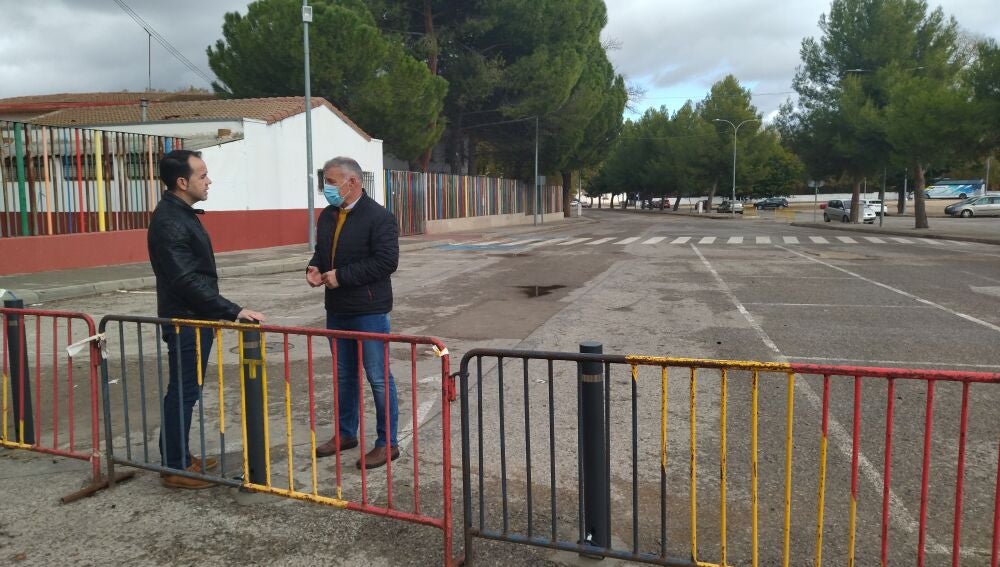 Esta mañana el alcalde Sergio García-Navas y el concejal de Deportes Francisco Gallego de la Sacristana han visitado las obras que se están llevando a cabo para la peatonalización definitiva de los viales aledaños al colegio Carrasco Alcalde y a las zonas deportivas.