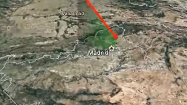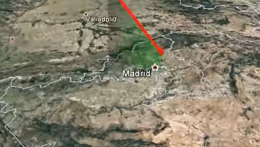 Debido a esta elevada velocidad, el brusco rozamiento con el aire hizo que la roca se volviese incandescente a una altura de unos 84 km, casi en el límite con la provincia de Ávila. Esta incandescencia fue la que generó la brillante bola de fuego, que por su gran luminosidad pudo verse desde más de 600 kilómetros de distancia. La bola de fuego, que mostró varias explosiones a lo largo de su trayectoria, avanzó en dirección sureste y se extinguió sobre la ciudad de Madrid a una altitud de unos 21 kilómetros, prácticamente sobre la vertical del distrito de Puente de Vallecas.