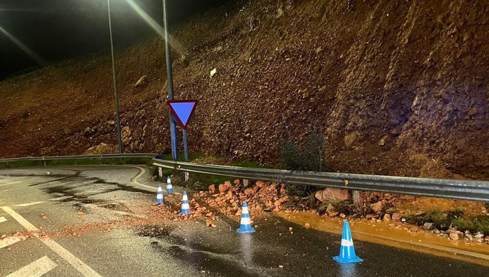 La carretera N-420 permanece cortada en ambos sentidos a la altura de Brazatortas (Ciudad Real) por un desprendimiento de rocas.