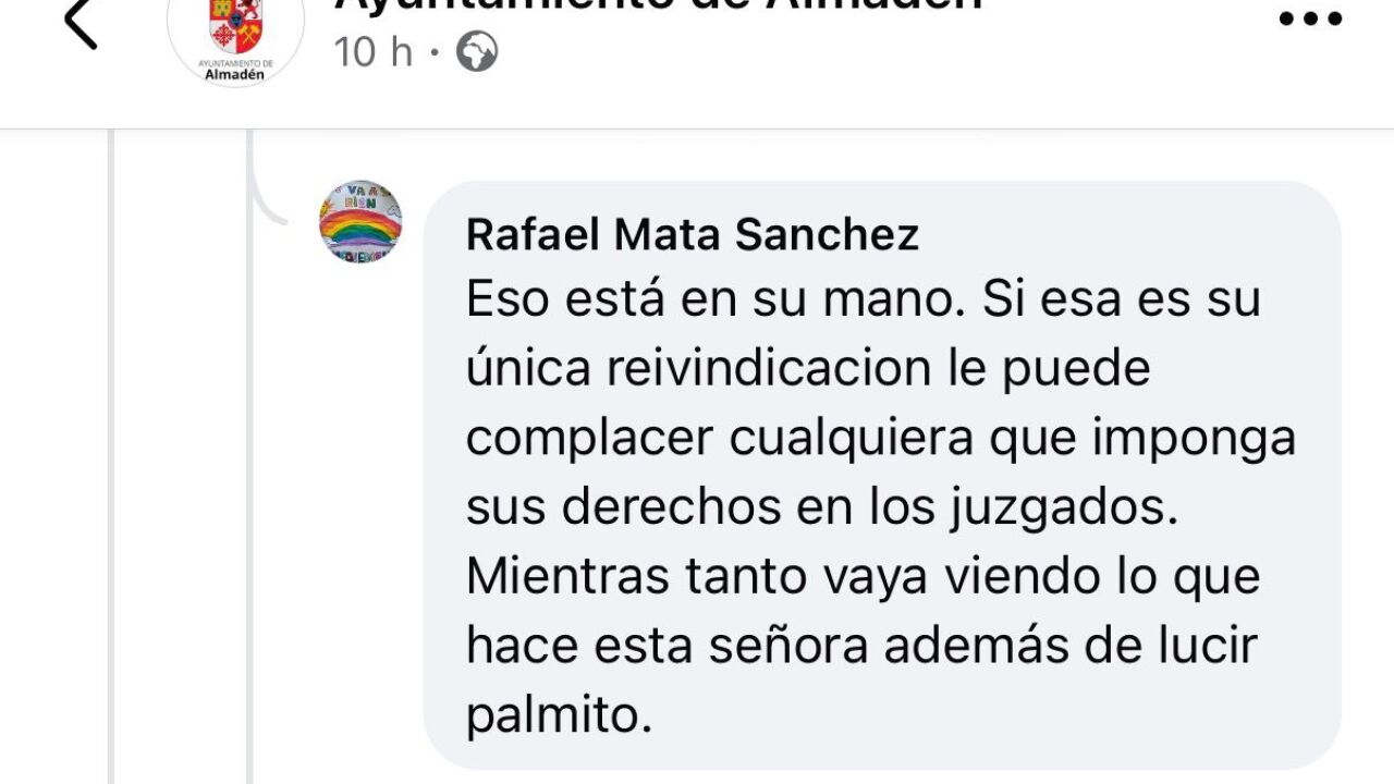 La alcaldesa de Almadén, Raquel Jurado, ha acusado al secretario general del PSOE de Almadén de hacer manifestaciones profundamente machistas en comentarios que ha publicado en las redes sociales del Ayuntamiento.