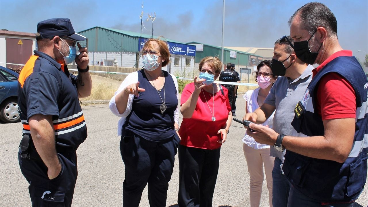 La delegada del Gobierno de Castilla-La Mancha en Ciudad Real, Carmen Olmedo, ha valorado este viernes, el trabajo desarrollado por las dotaciones de bomberos de Emergencia Ciudad Real e INFOCAM, así como los efectivos de Guardia Civil, Policía Local y voluntarios de Protección Civil, en la extinción del incendio que se declaraba esta mañana en el Polígono Industrial Pozo de Las Nieves, en la localidad de Almadén, y que ha quedado controlado pasadas las 17.30 horas.