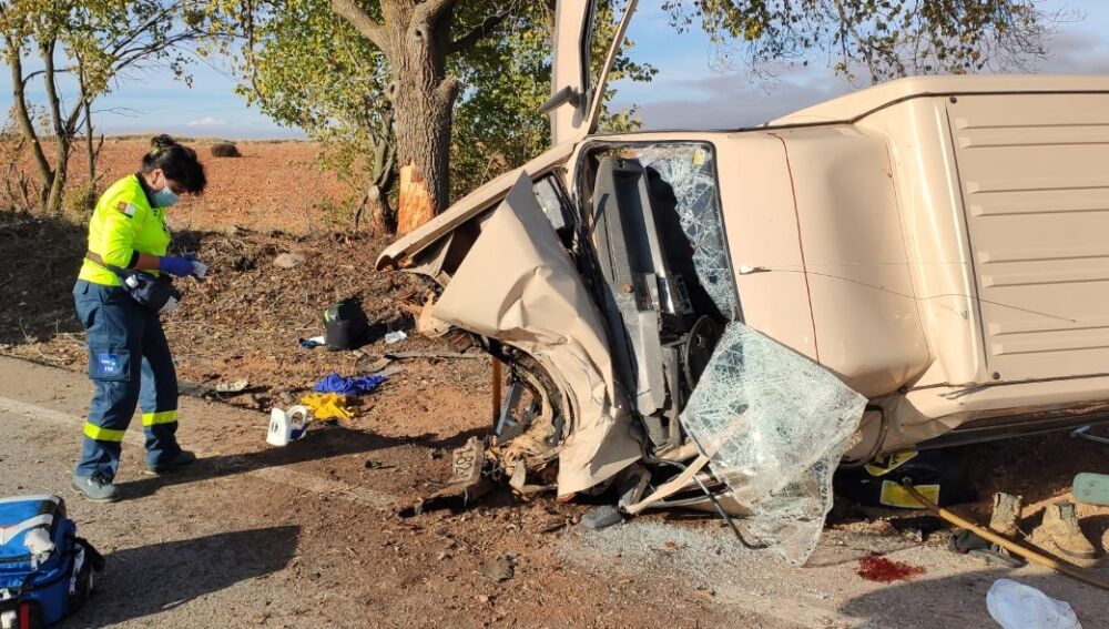 Cuatro heridos, dos de ellos graves, tras la salida de vía de su turismo y choque contra un árbol en La Solana
