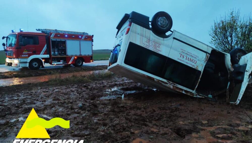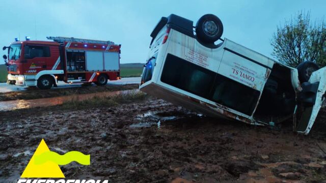 El siniestro ha consistido en la salida de vía y posterior vuelco de una furgoneta en la que iban cuatro hombres, uno de ellos de 64 años de edad.