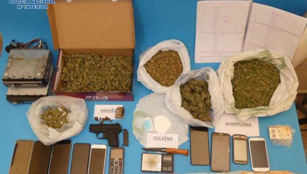 La Policía Nacional ha detenido en Puertollano a dos personas que distribuían cocaína, hachís y marihuana desde un domicilio en el que también se han intervenido un arma de fuego simulada, útiles para el pesaje de la droga y otros efectos de presunta procedencia ilícita, logrando desarticular un importante punto de venta de drogas que se había asentado en la ciudad muy próximo a un Centro de Educación Secundaria.