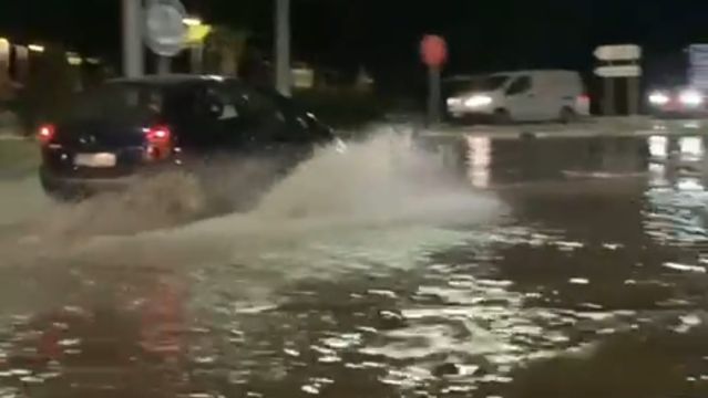 El reventón ha ocurrido esta noche y el agua ha anegado la rotonda que hay frente al pabellón deportivo y algunas calles de alrededor.