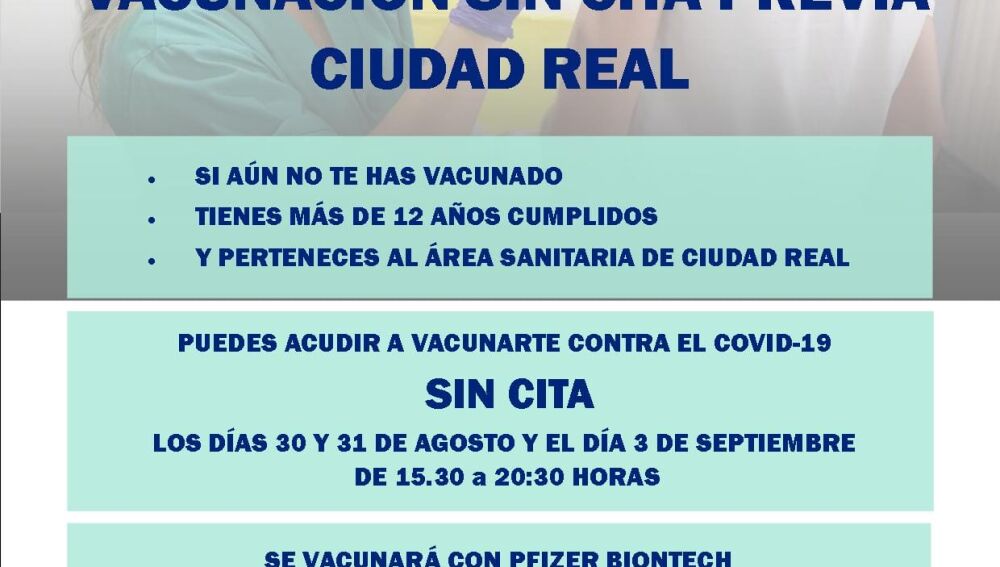 El Hospital General Universitario de Ciudad Real ha programado tres días de la próxima semana para realizar una vacunación masiva contra la Covid-19 sin necesidad de cita previa.