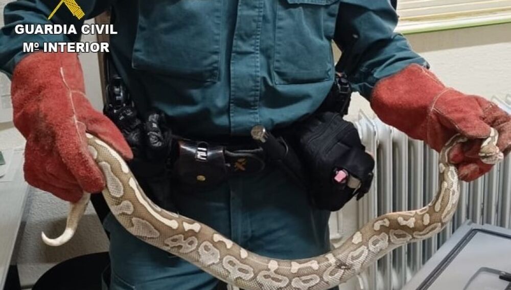 Agentes de la Guardia Civil pertenecientes a los Servicios de Protección de la Naturaleza (SEPRONA), localizaron hace pocos días un espécimen de pitón real en una calle céntrica de la localidad de Daimiel.