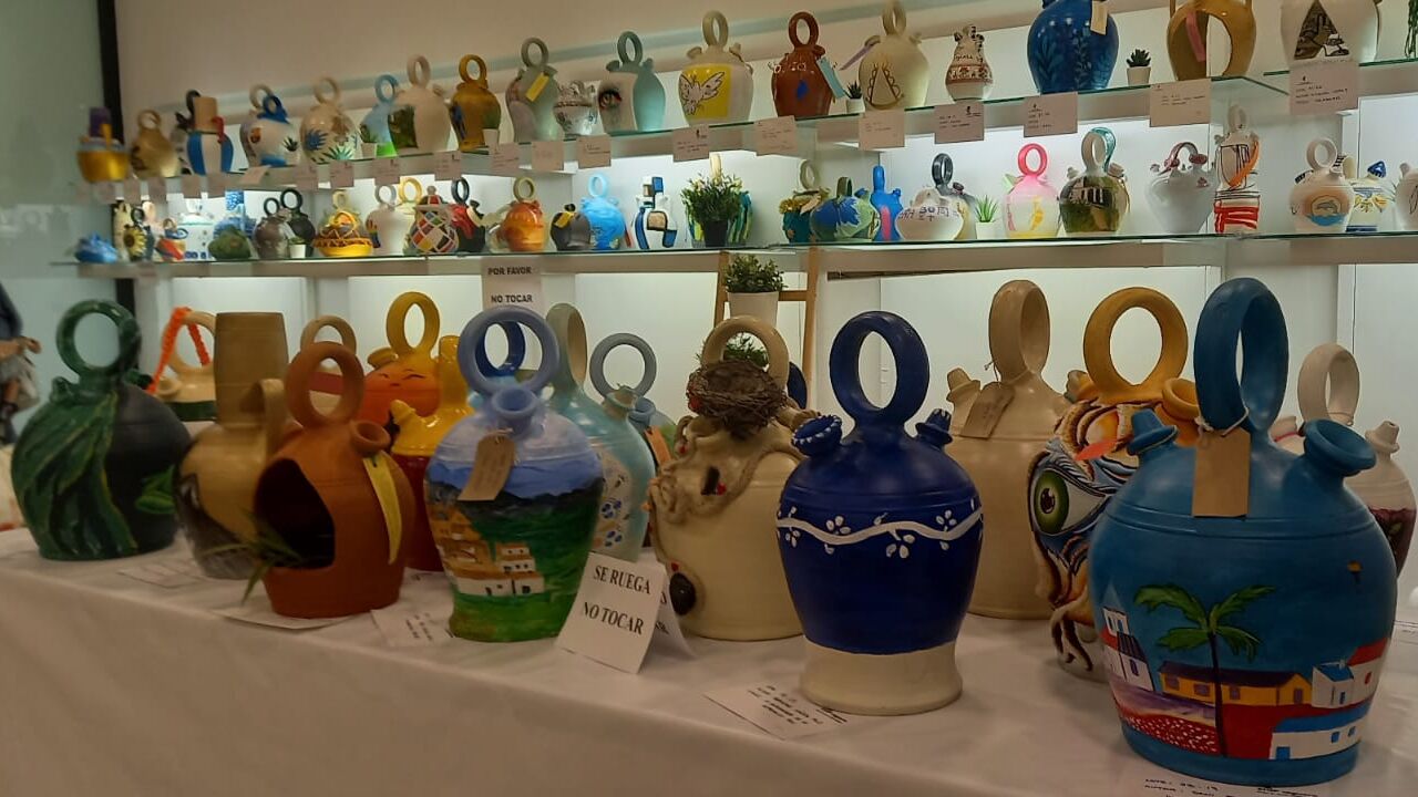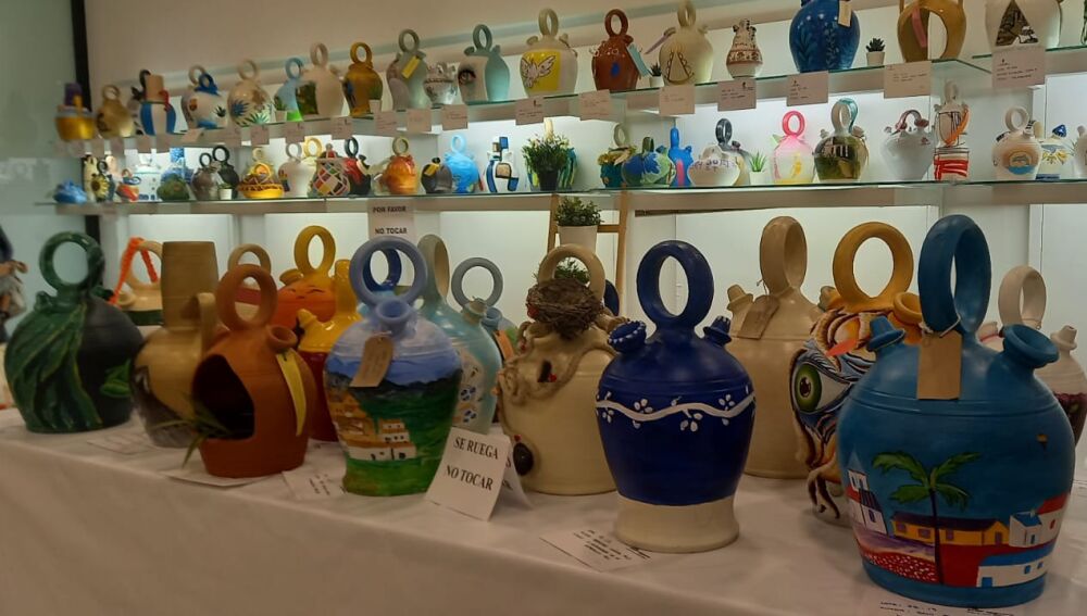 Este año se exponen alrededor de 250 botijos, la mayoría pintados por artistas locales y buena parte de ellos proceden de la Escuela de Arte de nuestra ciudad. La exposición está situada en el Centro Comercial Albacenter, al lado de H&M, entrando por la calle Alcalde Conangla.