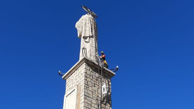 El monumento dedicado al Sagrado Corazón de Jesús, ubicado en el Cerro Socorro de la ciudad de Cuenca, sufrió el pasado 28 de enero actos vandálicos que obligaron a intervenir a los bomberos y a efectivos de varios cuerpos para devolverlo a su estado original.