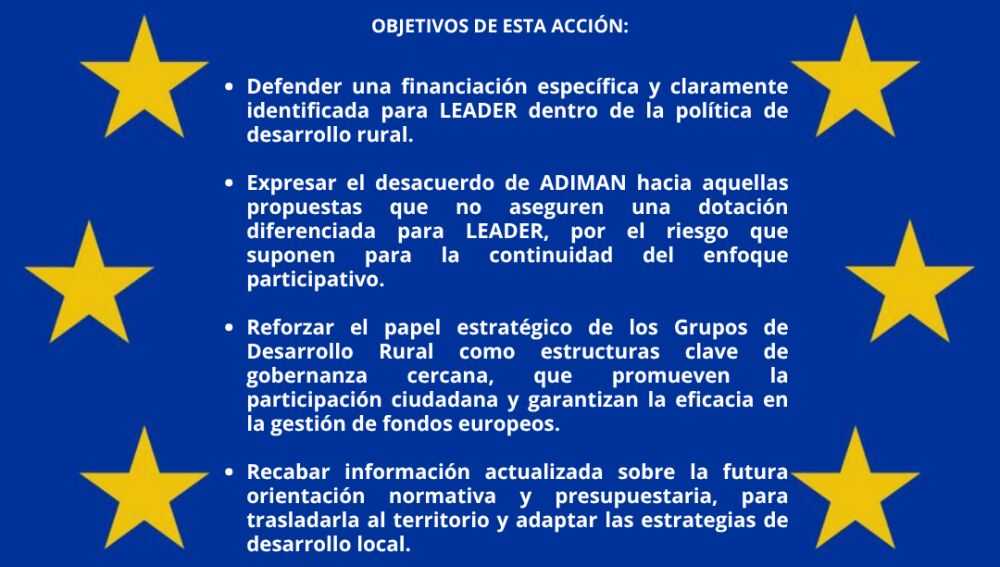 Esta iniciativa se enmarca en una acción coordinada por la Red Castellano Manchega de Desarrollo Rural (RECAMDER), junto a otros Grupos de Desarrollo Rural de Castilla-La Mancha, con el fin de defender la continuidad del programa y su dotación presupuestaria en el periodo 2028-2034.