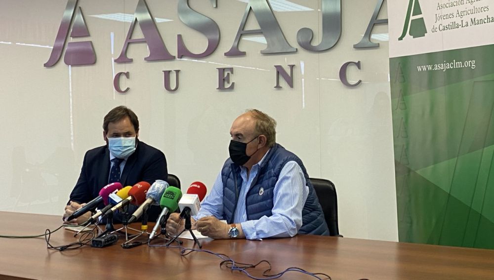 Francisco Núñez (izquierda) con el presidente de Asaja de Cuenca, José María Fresneda, este miércoles en la sede de la organización en la capital | Francisco Núñez