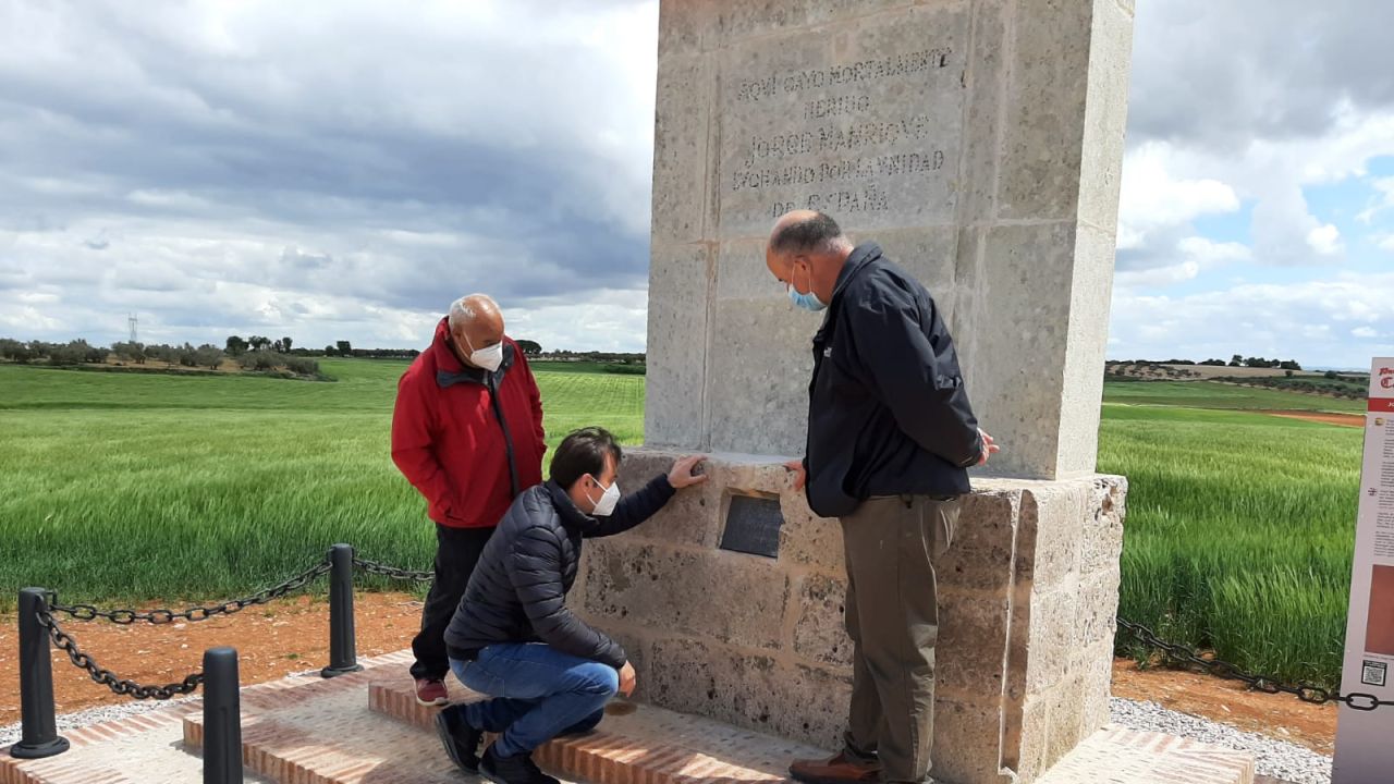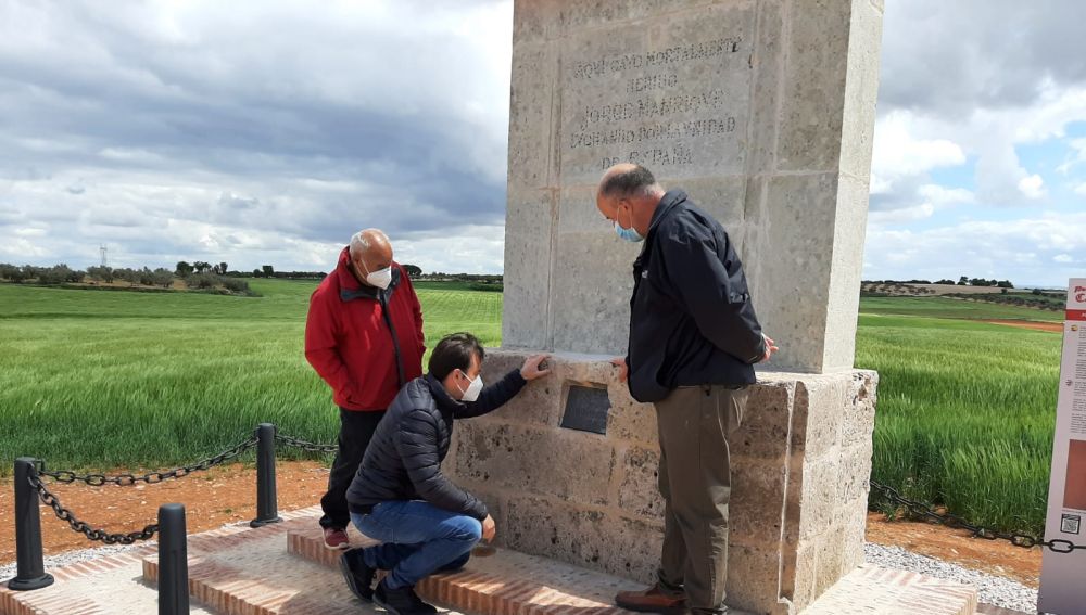 En el monumento se lee: "Aquí cayó mortalmente herido Jorge Manrique, luchando por la unidad de España".