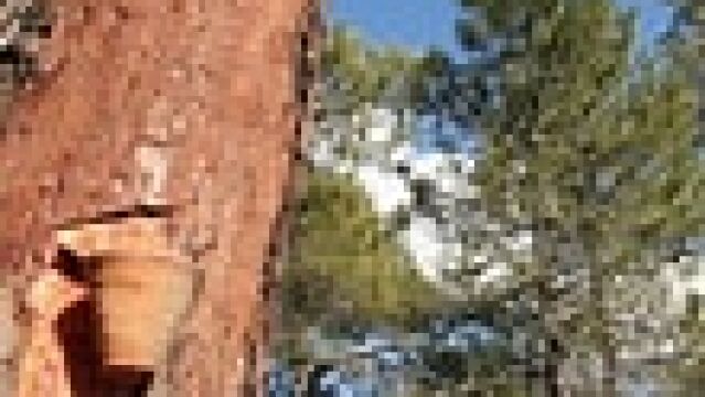 Un pino de las comarcas resineras, la Sierra Norte y Molina de Aragón, puede producir entre 2 y 3 kilos de resina de media.