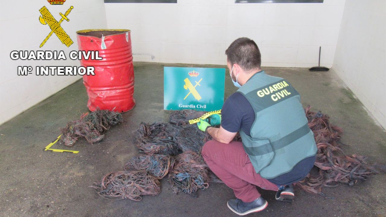 La Guardia Civil realizó numerosas inspecciones en este tipo de establecimientos, conocidos comúnmente como chatarrerías, donde se pudo comprobar que varias personas habían hecho entrega de importantes cantidades de cable de cobre pelado sin justificar su lícita procedencia.